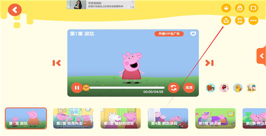 2、打开其中你要接触的动画学习绘本知识,按照图示点击下载选项。