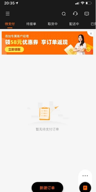 可以使用新建订单、三方订单、批量发单、小票发单多种方式;