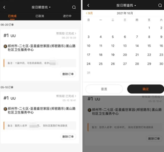 进入后可查询账户进行中,已完成,已取消三种状态的订单记录;可勾选日期,单独查询某一时间的订单信息;