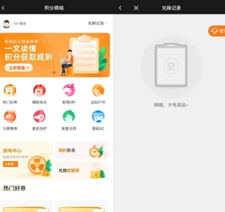 进入后可查看自己的积分,可以兑换的各种好物以及兑换记录;