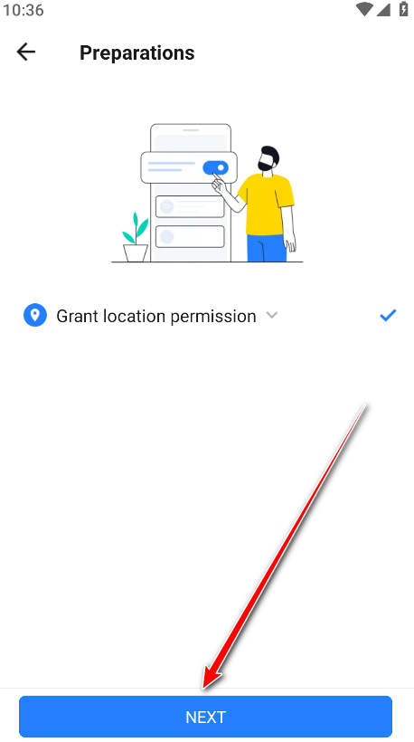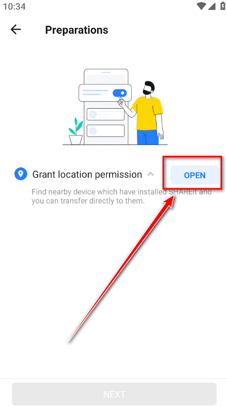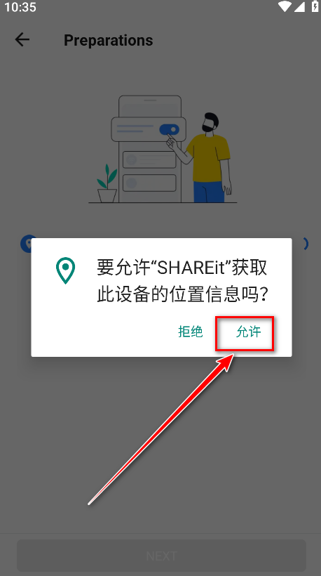 打开GPS定位和蓝牙(用于扫描接收方设备),点击“下一步”。