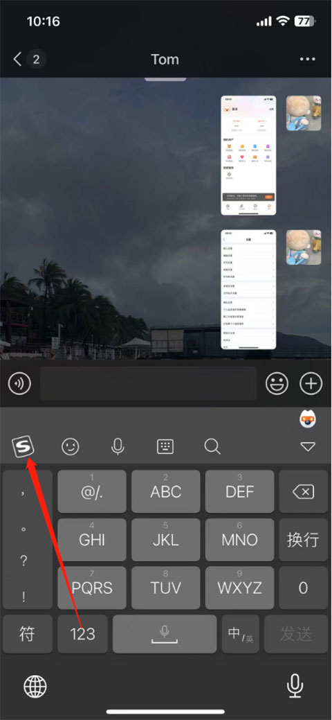 1、按照之前说的方式安装输入法以后打开一个软件,在弹出的虚拟键盘上点击左上角箭头所指的菜单标志。