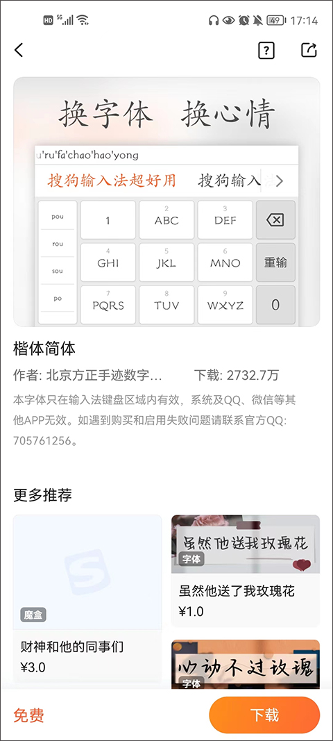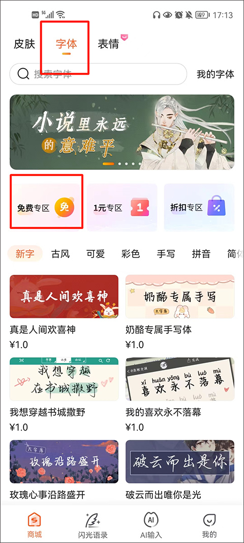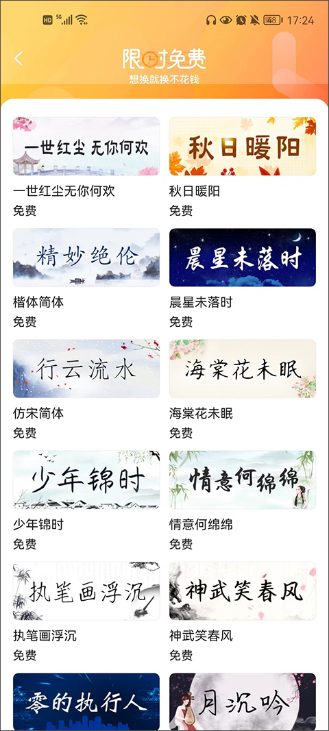 5、这里会有一些免费的字体供用户选择,都是比较不错的,相比较于付费的版块来说,还是能够淘到一些不错的字体更换设置的。