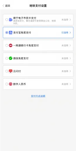 2.选择任意一种方式开通“免密支付”功能,具体点击“支付方式说明”。