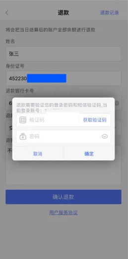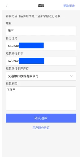 4.填写银行账户等相关信息,点击 “确认退款”。