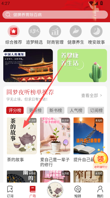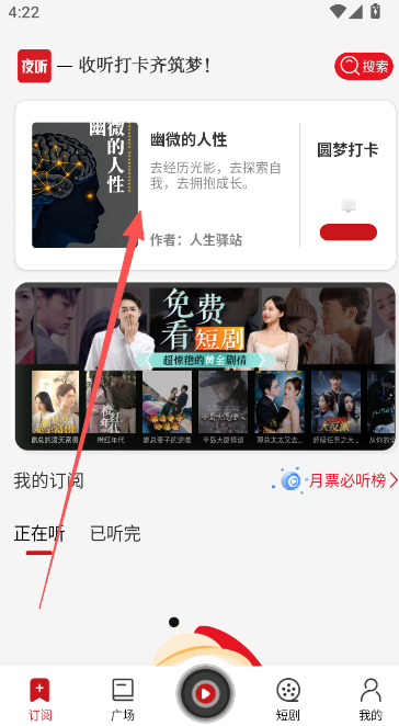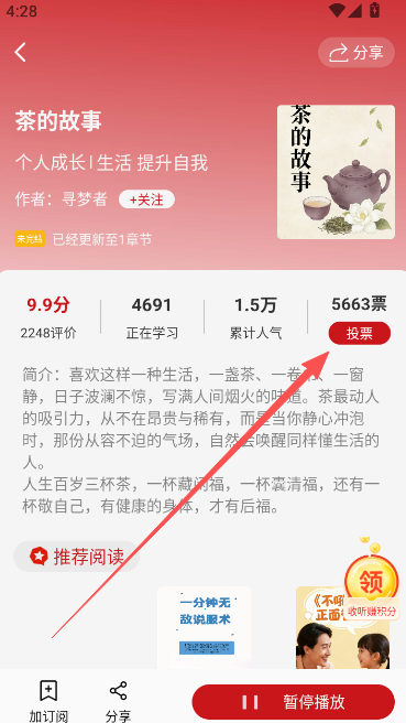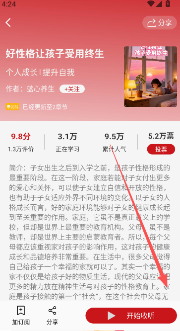 1、在首页订阅版块,选择自己感兴趣的听书内容,进入详情界面准备收听。