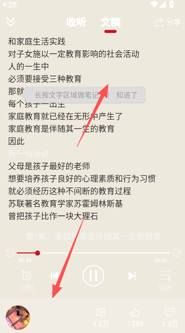 3、收听的过程不止有音频的呈现,更有文稿对照,帮助你快速理解搞懂,解读更多。
