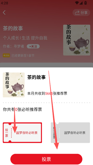 3、推荐票的数量从1张开始,如果没有的话需要先去获得之后,再来这里进行投票的操作。