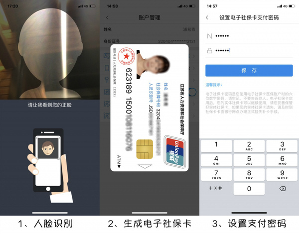 用户按手机语音提示内容并配合肢体动作完成实名认证,同时生成电子社保卡,然后跳转至“密码设置”页面进行电子社保卡支付密码设置。