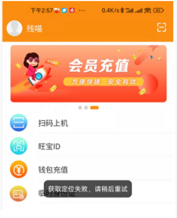 3、扫码上机提示“获取定位失败,请稍后重试”