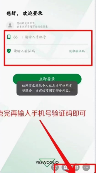 1、找到右下点角击使用完整服务输入手机号码和验证码