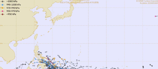 3、或者是切换成风场模式,查看台风的风速风力图,每次切换都有对应的台风路径图像显示,结果文字来看会更加直观一些。