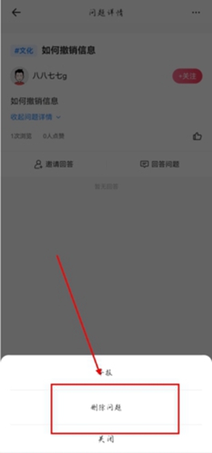 3、接着就会弹出许多的选择,我们只需要点击【删除问题】即可完成撤销。