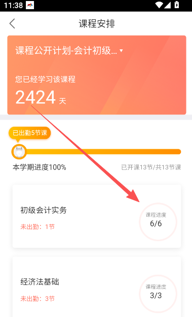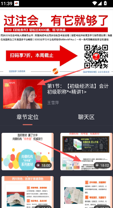 5、下滑页面,找到课程章节定位部分,查看录播课程学习精讲部分。