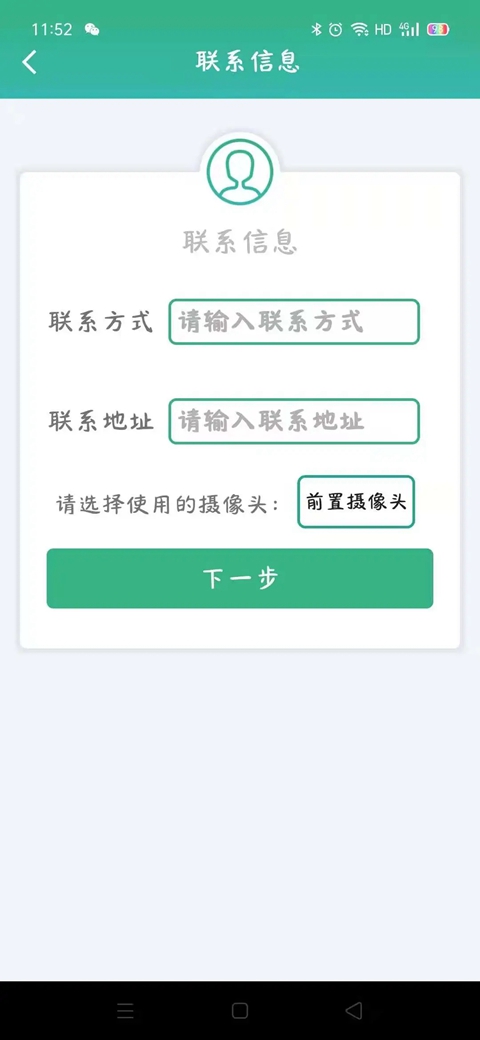2、确定身份后填写联系方式及联系地址,选择摄像头进行下一步。