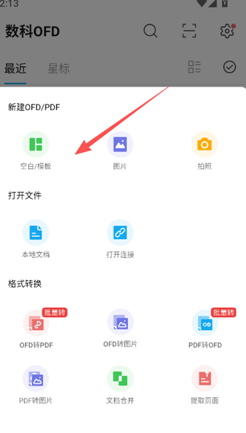 1、下载本站软件点击首页下方的蓝色+图标选项,,通过新建OFD或打开文件的形式来转换,这里乐乐游戏以新建OFD举例。