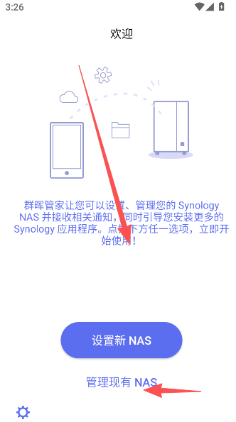 2、有购买过群晖网络科技(上海)有限公司旗下NAS设备的点击管理现有,如果没有的话就选择设置新NAS。