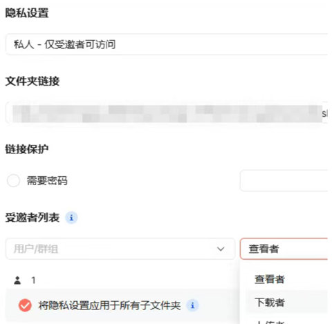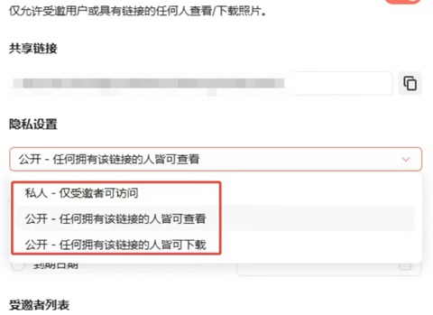 隐私设置里面设定的是共享范围,受邀列表可以赋予其它权限