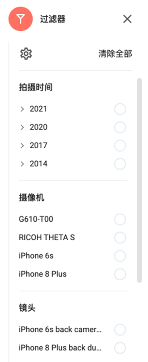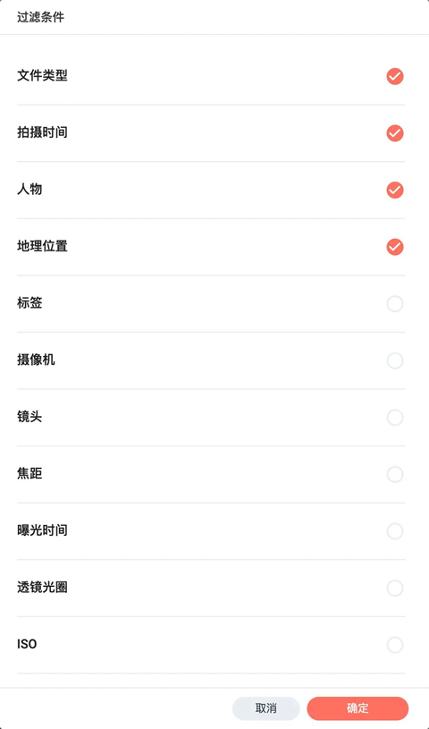 可以根据照片参数等信息进行筛选,分类大概能有这么细。