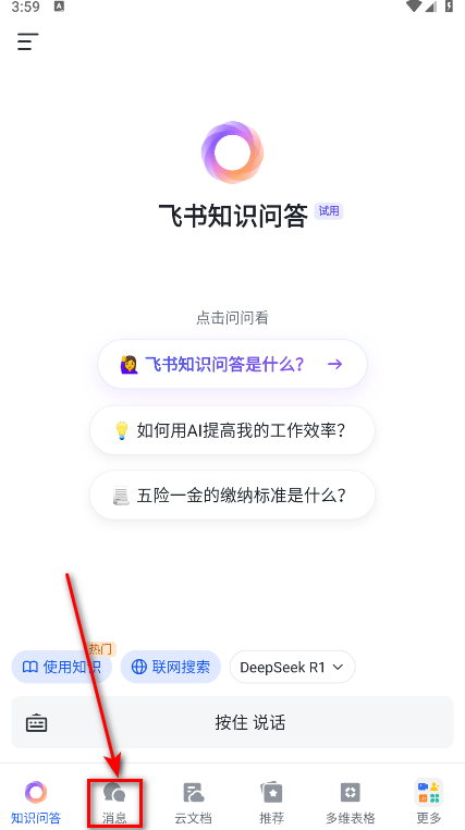 在底部导航栏中,点击「消息」(或类似图标,如对话气泡)。