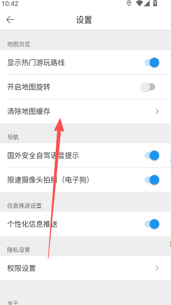 2、来到地图浏览界面内,点击清除地图缓存。