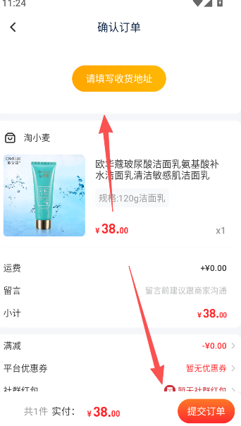 6、点击确认填写是收获地址,完成后提交订单即可。