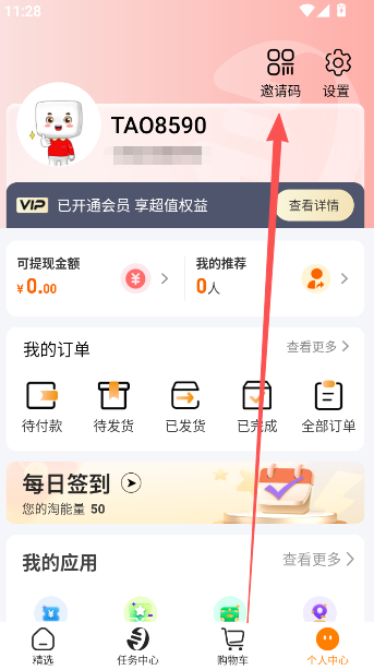 1、在设置页面中,点击上方的邀请码选项。