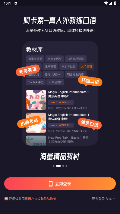 阿卡索app这是一款专业对于英语教育应用,通过盖应用能够为大家带来不错的英语学习服务,随时随地都是可以获取到定制化的英语学习,能够为大家带来相当不错的英语学习体验,如果您也喜欢英语那么一定不要错过了,现在就来下载使用吧!