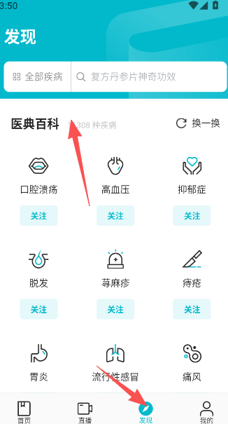 3、发现,医典百科专业内容聚合,根据人体特征分类说明各项症状,方便大家对症下药,及时解决医疗上所遇到的问题。