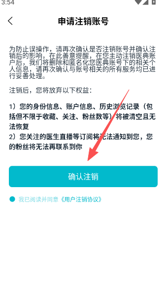 4、完整查看注销提示的文字部分,然后点击确认注销完成此项操作即可。