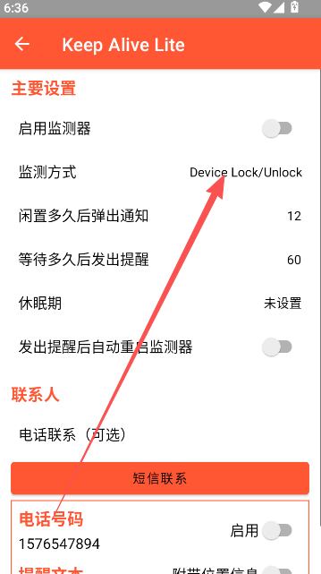 -监控方式-选择使用锁定屏幕或其他应用来检测活动。如果使用其他应用,系统将提示您选择要监控的应用。