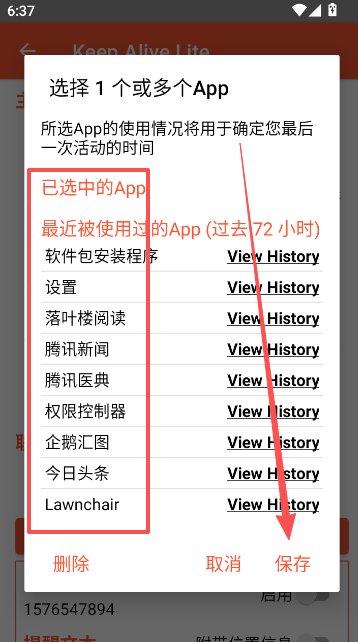 3、在这里选择已下载好用的应用,进行监测的添加操作,完成以后,软件也会根据你的使用行为来判断是否为死了么或是活着吗的状态。