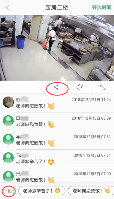 2、即可查看孩子所在学校、班级的开放时间,直播情况,看直播的同时,可以发送评论,也可以把直播内容分享给身边的人。