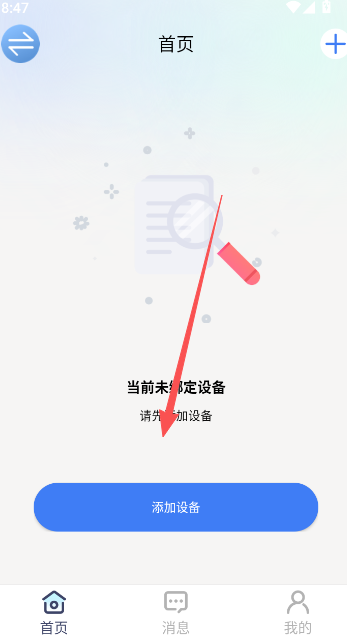2、来到首页以后,选择添加设备开始绑定操作。
