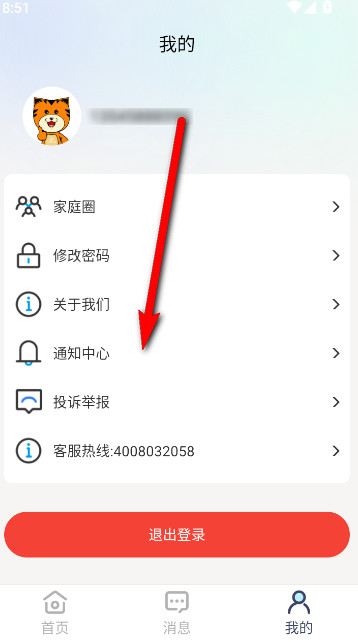 1、点击底部我的界面,选择通知中心功能选项进入。
