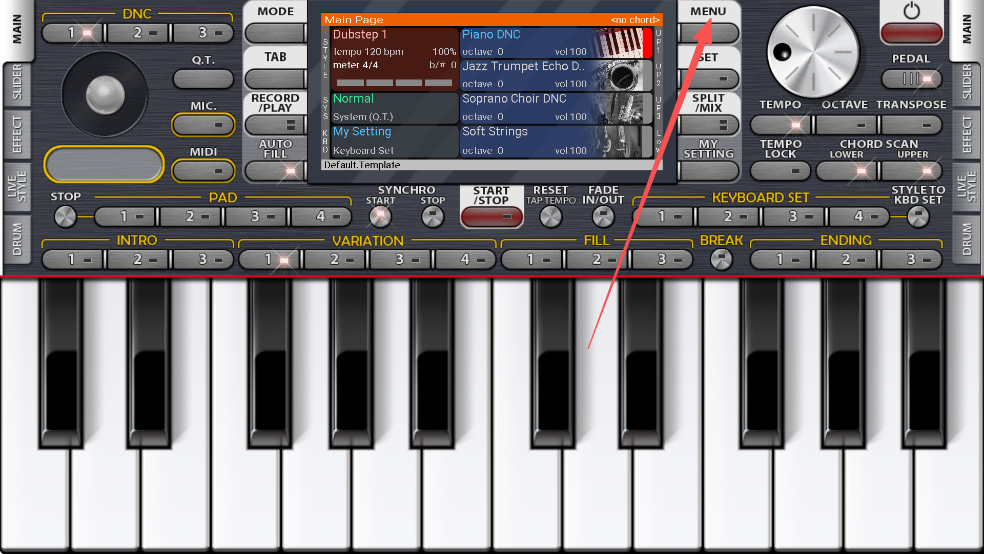 Volume/FX:设置键盘、风格和麦克风的音量或效果。