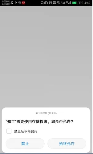 1、首次登录,点击“ 知工 ”APP,打开提示页面,如下图所示: