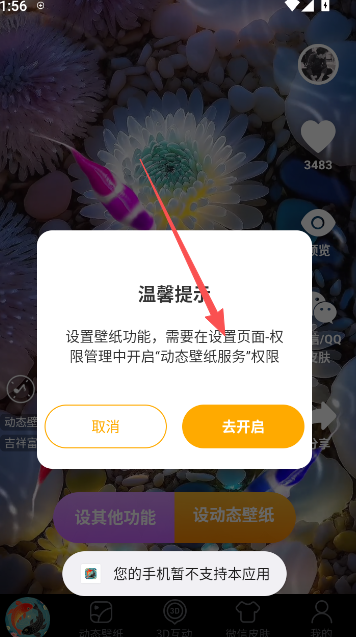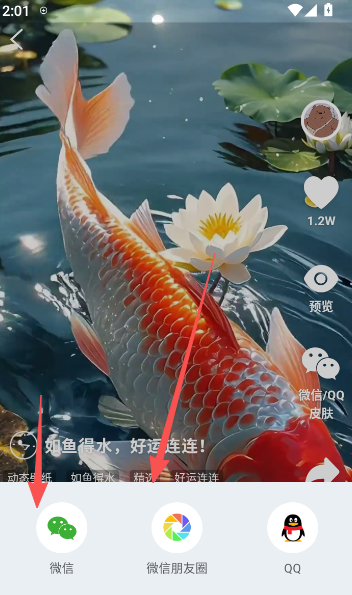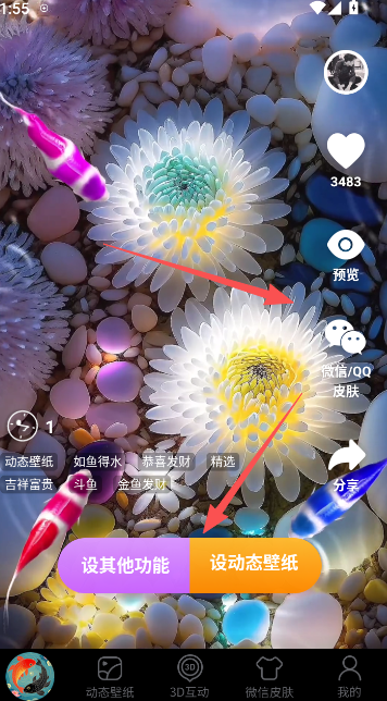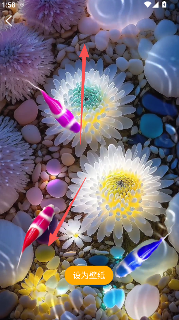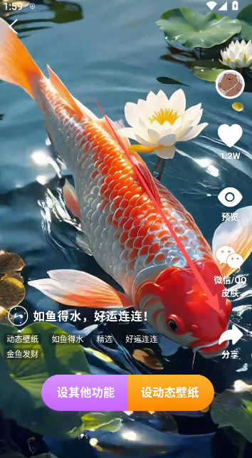 1、锦鲤金鱼壁纸应用使用本身是无需注册账号进行其他项的操作,这里我们直接上下滑动页面查看不同风格,点击设为动态壁纸。