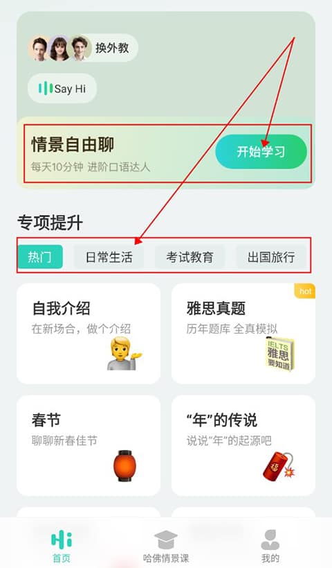 用户在本站下载并打开软件后,就可以在首页选择自己想要学习的AI对话类型。
