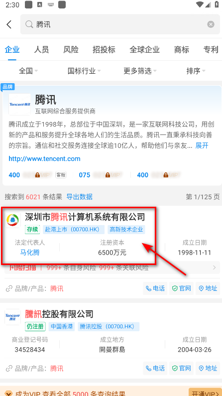系统会显示与该姓名相关的所有企业信息,包括企业名称、统一社会信用代码、法定代表人、注册资本、成立日期等。