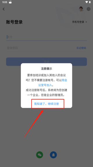 6、再点击”我知道了,继续注册“