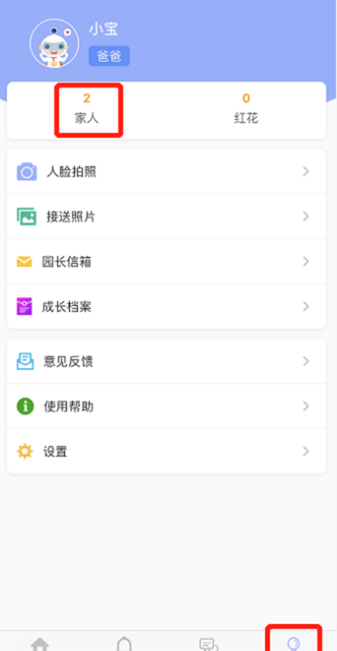 2、进入我的---家人---邀请家人快来跟家人一起关注宝宝和幼儿园的各项动态吧!