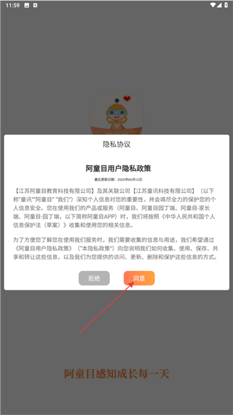 1、下载打开应用,首次使用需要完整查看用户隐私政策部分。