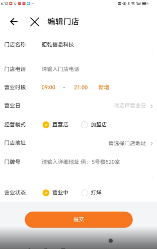 4、之后会重新登录,点击门店管理完善门店信息