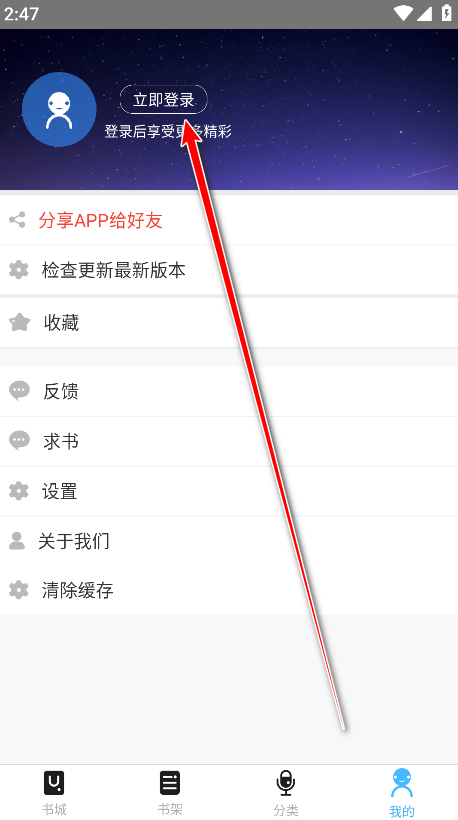 返回应用首页或底部导航栏,找到 “书架”、“我的收藏” 或类似入口。