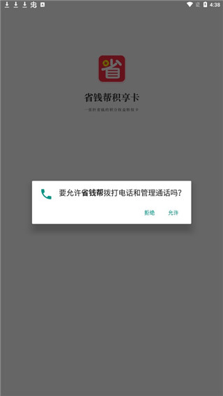 3、点击允许省钱帮拨打的话和管理通话。