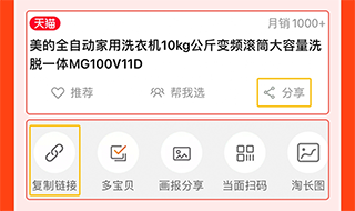 1、在淘宝商品详情页,点击商品标题下方的分享按钮,然后点击复制链接;