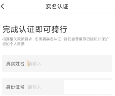 2、点击完成实名认证,输入用户本人的真实姓名和身份证号码。