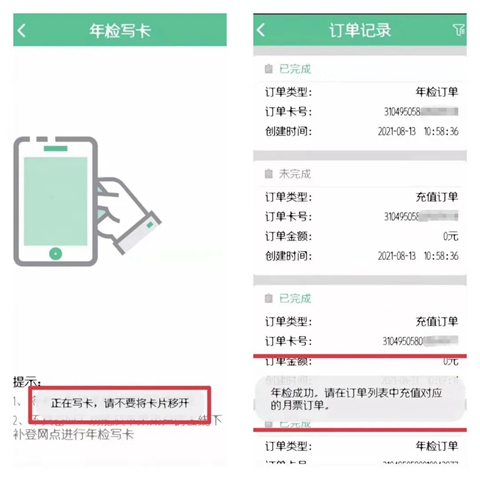 4、手机NFC年检写卡补登或线下补登机年检写卡补登。