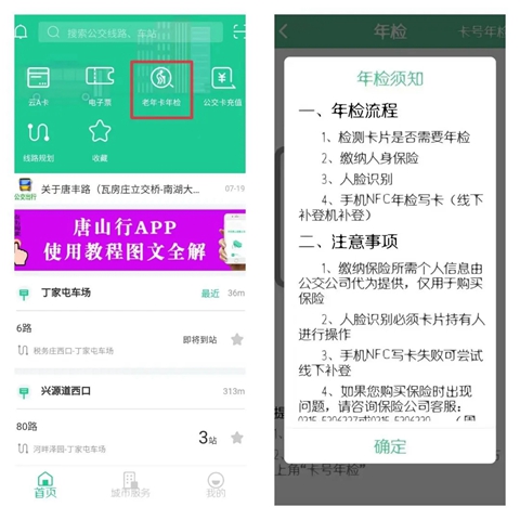 第二种:卡号年检(卡号年检可以在线下补登机进行补登;也可以使用具有NFC功能的安卓手机进行补登,补登时必须注意唐山行APP的账号为:卡号年检时使用手机的登录账号)